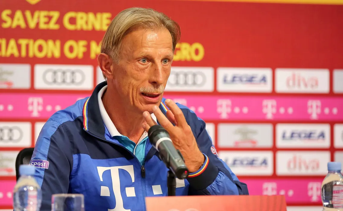 Christoph Daum, antrenorul selectionatei de fotbal a Romaniei, sustine o conferinta de presa inainte de partida cu selectionata Muntenegrului, desfasurata la Podgorica, duminica 3 septembrie 2017. © FOTO: Stefan Constantin / Sport Pictures