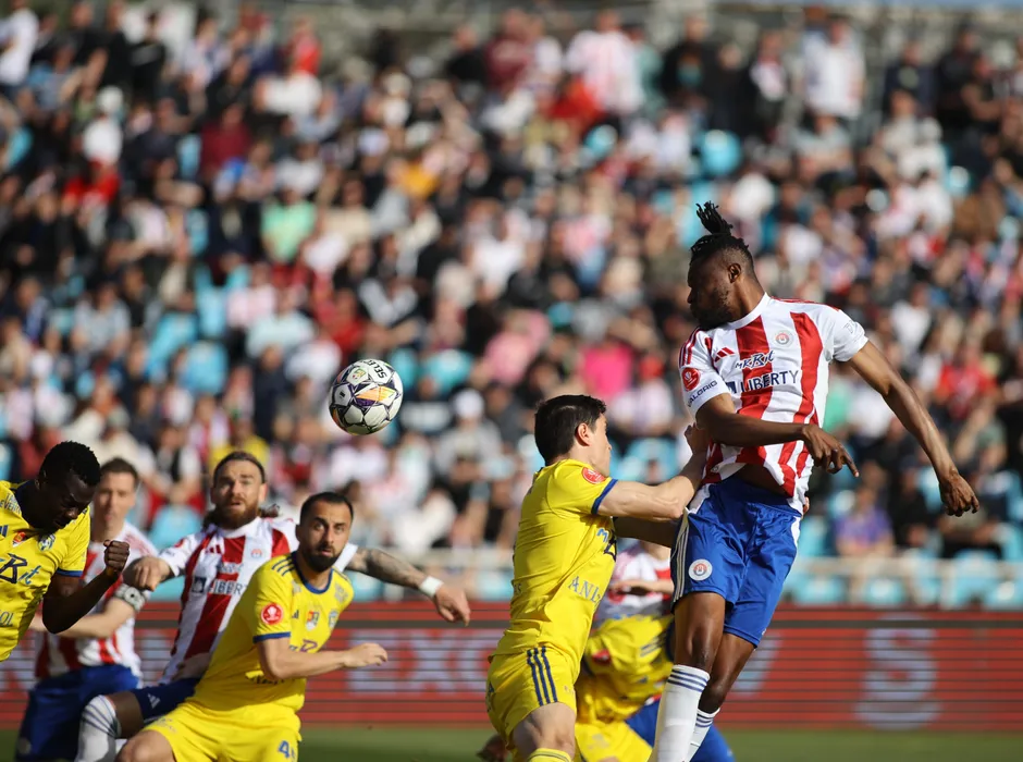Jonathan Cisse si Bachana Arabuli in meciul de fotbal dintre SC Oțelul Galati si AFC Unirea 04 Slobozia, contand pentru Superliga Superbet - Play-Out, desfasurat pe Stadionul Otelul din Galati, vineri 18 aprilie 2025. © FOTO: Sorin Pana/SPORT PICTURES