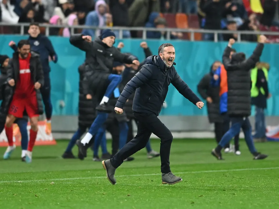 Mihai Stoica se bucura dupa victoria stelistilor din meciul de fotbal dintre FCSB si Farul Constanta, contand pentru Play-off-ul Superligii Superbet, desfasurat pe Arena Nationala din Bucuresti, luni 17 aprilie 2023. © FOTO:Razvan Pasarica/SPORT PICTURES