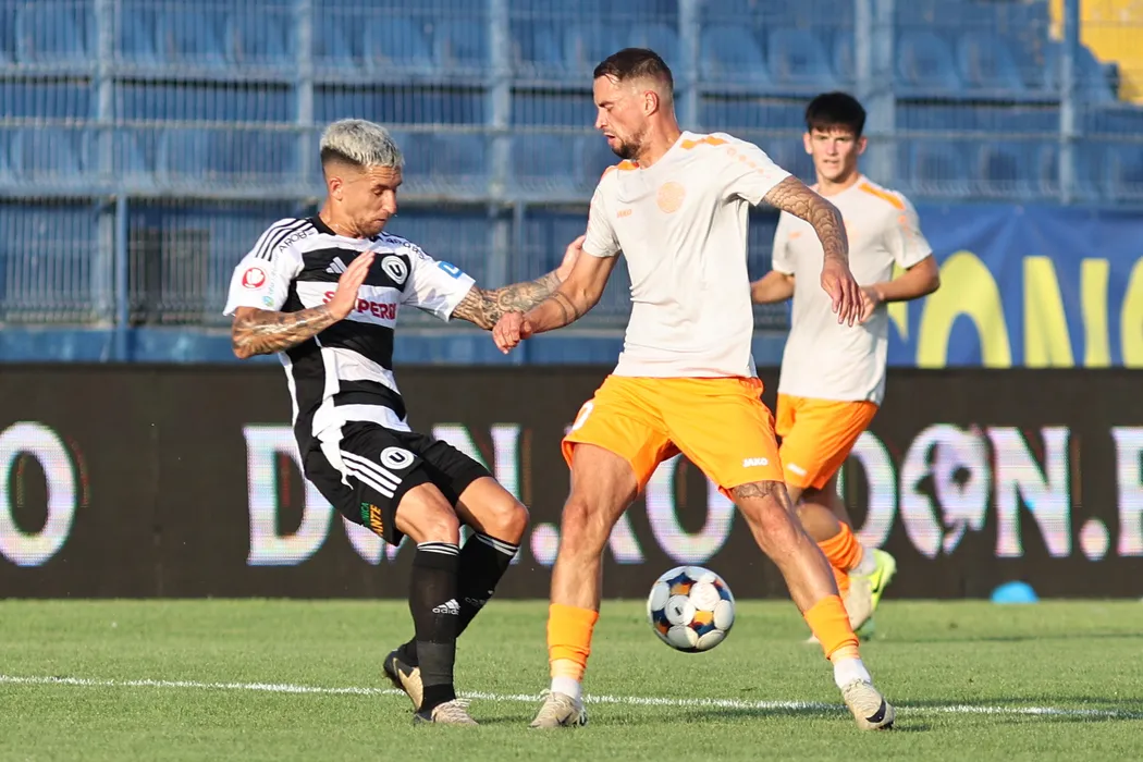Metaloglobus (echipament gri-oranj) si U Cluj s-au intalnit intr-o partida din prima etapa a Superligii, sezonul 2025-2026, la Bucuresti, vineri, 11 iulie 2025. GEORGE FLUSTER / MEDIAFAX FOTO