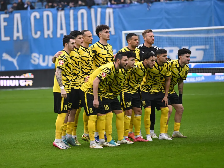 Fotbalistii de la Metaloglobus la o fotografie de grup realizata inaintea meciului de fotbal dintre Universitatea Craiova si Metaloglobus Bucuresti, contand pentru Superliga Superbet, desfasurat pe Stadionul Ion Oblemenco din Craiova, sambata 28 februarie 2026. © FOTO:Razvan Pasarica/SPORT PICTURES