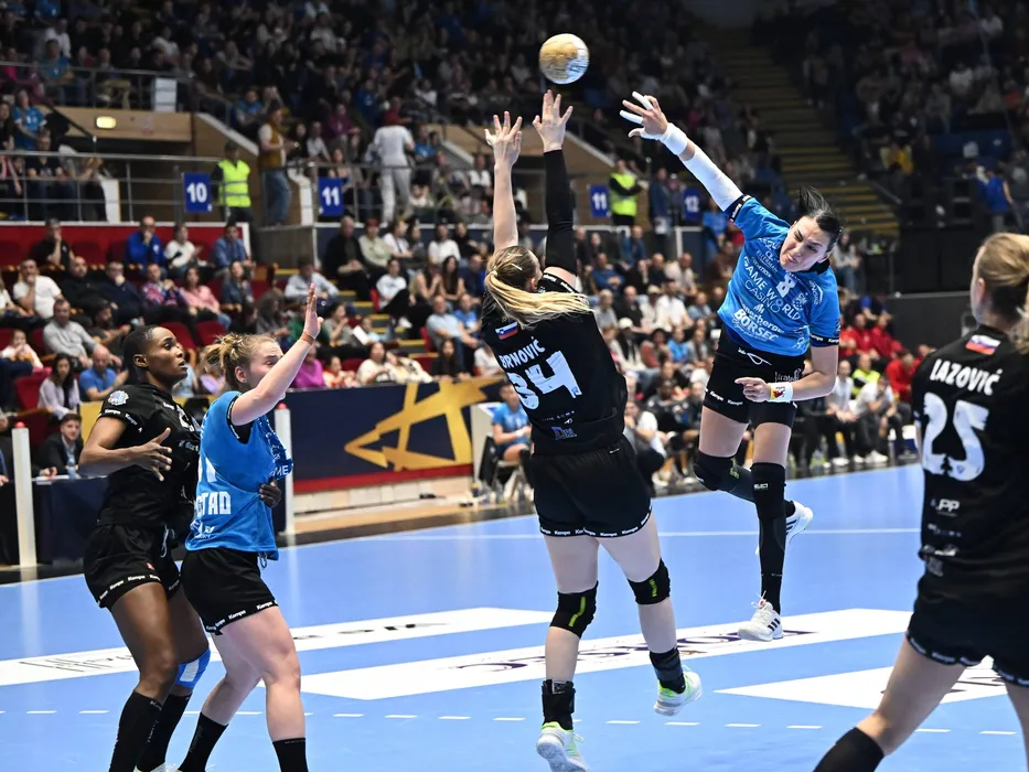 Allison Marie Pineau si Cristina Georgiana Neagu in meciul de handbal feminin dintre CSM Bucuresti si Krim Mercator Ljubljana, contand pentru Liga Campionilor, desfasurat in Sala Polivalenta-Ioan Kunst Ghermanescu din Bucuresti, duminica 24 martie 2024. Bucuresti *** Allison Marie Pineau and Cristina Georgiana Neagu in the womens handball match between CSM Bucharest and Krim Mercator Ljubljana, counting for the Champions League, held in the Ioan Kunst Ghermanescu Polyvalent Hall in Bucharest, Sunday 24 March 2024 Bucharest Copyright: xRazvanxPasarica/SPORTxPICTURESx,Image: 859394228, License: Rights-managed, Restrictions: Credit images as "Profimedia/ IMAGO", Model Release: no