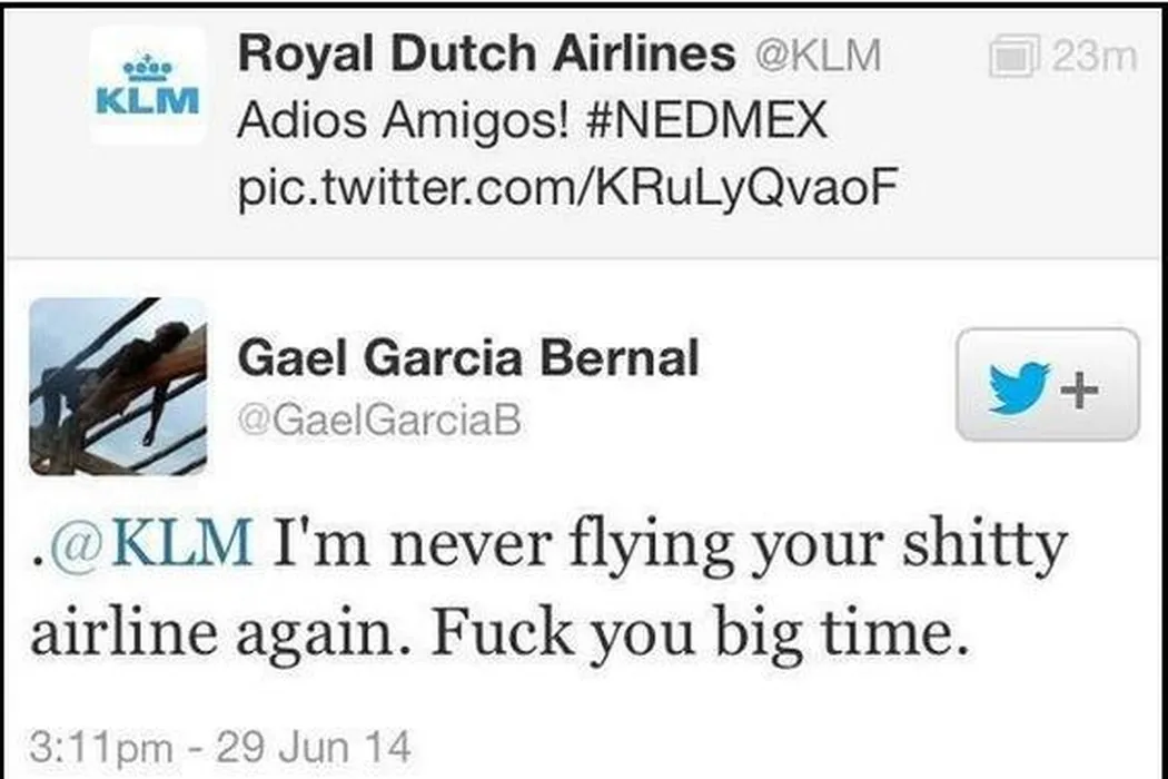 Mexicanii nu suportă glumele pe seama eliminării de la Mondial. Celebrul actor Gael Garcia Bernal a înjurat pe Twitter compania aeriană olandeză KLM