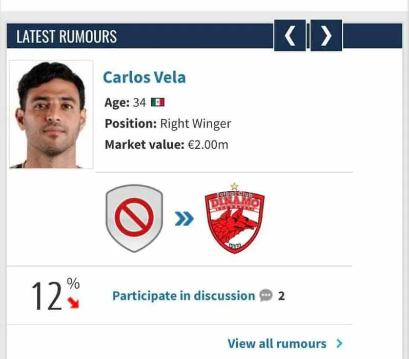 Mexicanul Carlos Vela, transferul bombă cu care Dinamo vrea să arunce în aer Superliga sau o nouă invenție anonimă pentru a băga de tot în ceață fanii „câinilor”? Ce scrie Transfermarkt