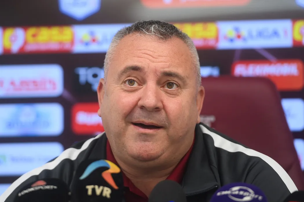 Mihai Iosif, antrenorul echipei de fotbal Rapid Bucuresti, reactioneaza in timpul unei conferinte de presa prilejuita de primul antrenament pe noul stadion al clubului din cartierul Giulesti, vineri, 25 februarie 2022. EDUARD VINATORU / MEDIAFAX FOTO