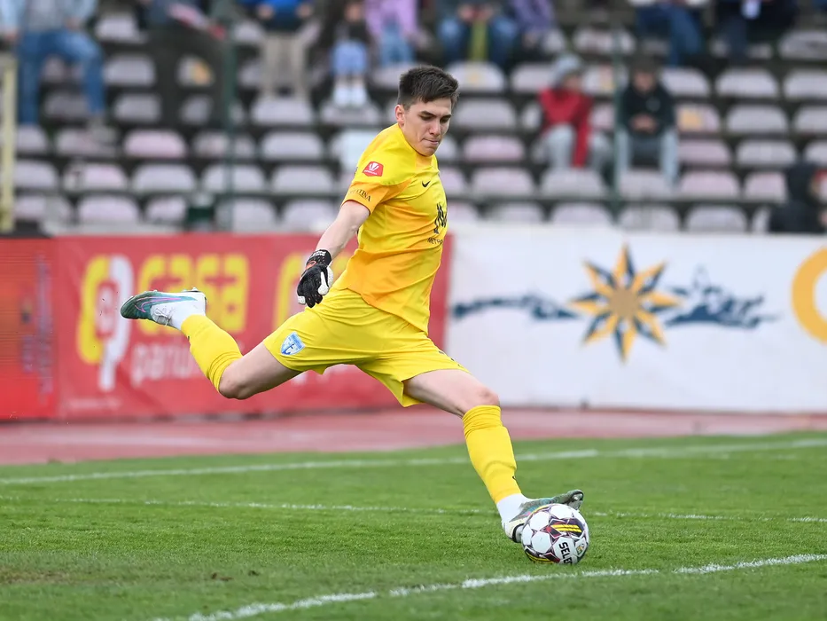 Mihai Maximilian Popa degajeaza in meciul de fotbal dintre FC Arges si FC Voluntari, contand pentru Play-out-ul Superligii Superbet, desfasurat pe Stadionul Nicolae Dobrin din Pitesti, duminica 2 aprilie 2023. © FOTO:Razvan Pasarica/SPORT PICTURES