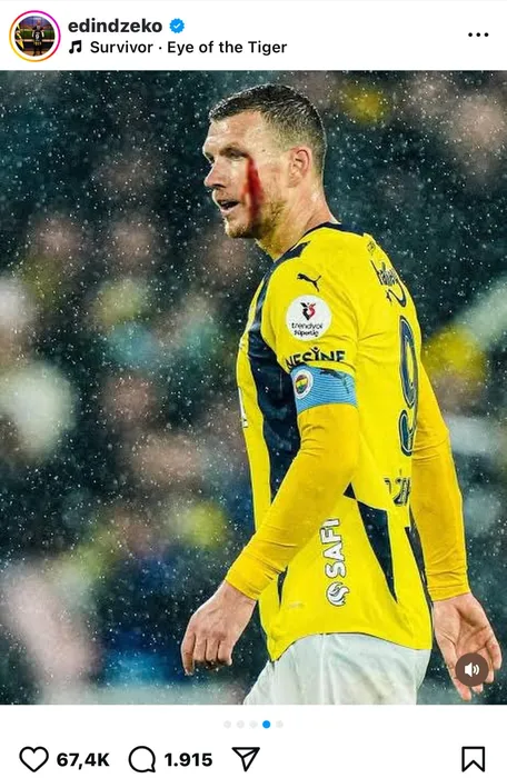Mihai Popescu l-a desfigurat pe Edin Dzeko. Atacantul Bosniei a postat o imagine cu chipul lui, după lovitura fotbalistului FCSB
