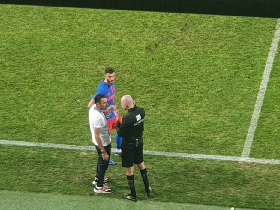 Mihai Popescu, roşu direct după ce a lovit cu cotul un adversar şi l-a umplut de sânge! Favoritul lui Gigi Becali a protestat, dar a fost calmat de Charalambous