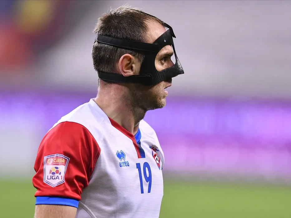 Andrei Alexandru Patache cu o masca de protectie in meciul de fotbal dintre FCSB si FC Botosani, contand pentru Liga 1 Casa Pariurilor, desfasurat fara spectatori pe Arena Nationala din Bucuresti, sambata 7 noiembrie 2020. © FOTO:Razvan Pasarica/SPORT PICTURES