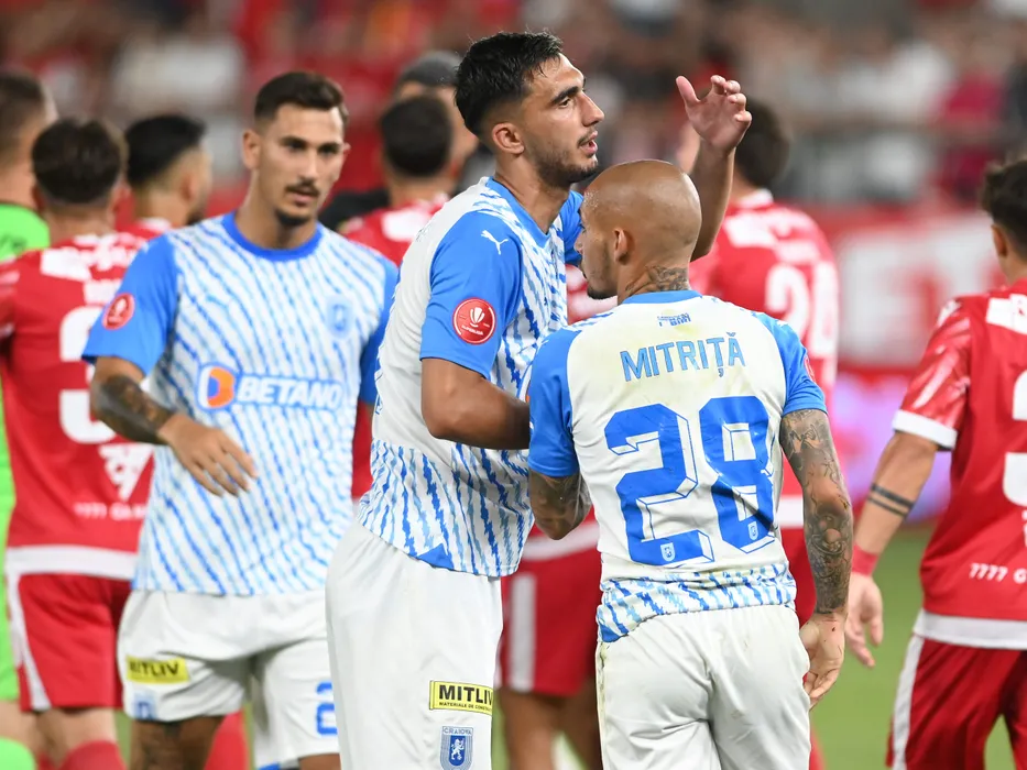 Andrei Virgil Ivan si Ionut Alexandru Mitrita in meciul de fotbal dintre Dinamo Bucuresti si Universitatea Craiova, din cadrul Superligii Superbet, desfasurat pe Stadionul National Arcul de Triumf din Bucuresti, luni 17 iulie 2023. © FOTO:Razvan Pasarica/SPORT PICTURES