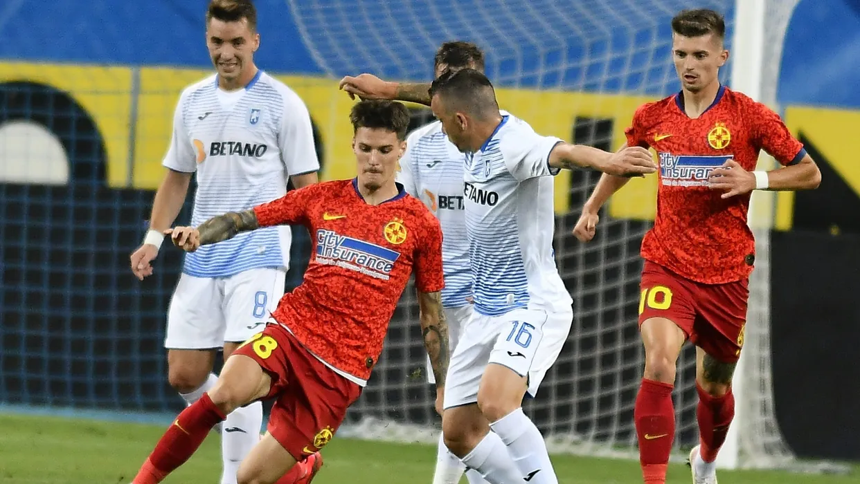Dennis Man, Dan Nistor si Florin Tanase in meciul de fotbal dintre Universitatea Craiova si FCSB, contand pentru play-off-ul Ligii 1 Casa Pariurilor, disputat fara spectatori pe Stadionul Ion Oblemenco din Craiova, duminica 12 iulie 2020. © FOTO:Razvan Pasarica/SPORT PICTURES