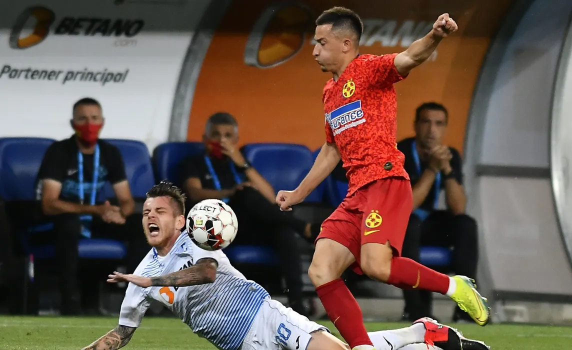 Alexandru Cicaldau si Olimpiu Morutan in meciul de fotbal dintre Universitatea Craiova si FCSB, contand pentru play-off-ul Ligii 1 Casa Pariurilor, disputat fara spectatori pe Stadionul Ion Oblemenco din Craiova, duminica 12 iulie 2020. © FOTO:Razvan Pasarica/SPORT PICTURES