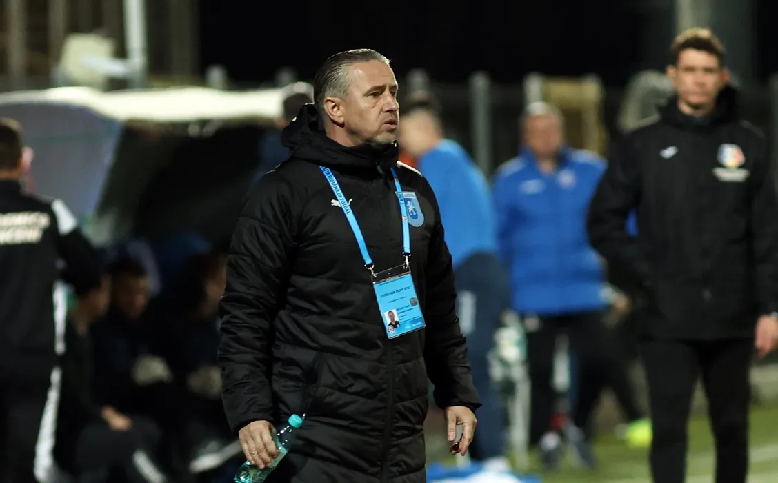 Laurentiu Reghecampf, antrenorul echipei CS Universitatea Craiova, urmareste meciul de fotbal contra formatiei Academica Clinceni din etapa a XXVII-a a Ligii 1, disputat pe stadionul Marin Anastasovici din Giurgiu din Bucuresti, luni, 21 februarie 2022. GEORGE FILIP / MEDIAFAX FOTO