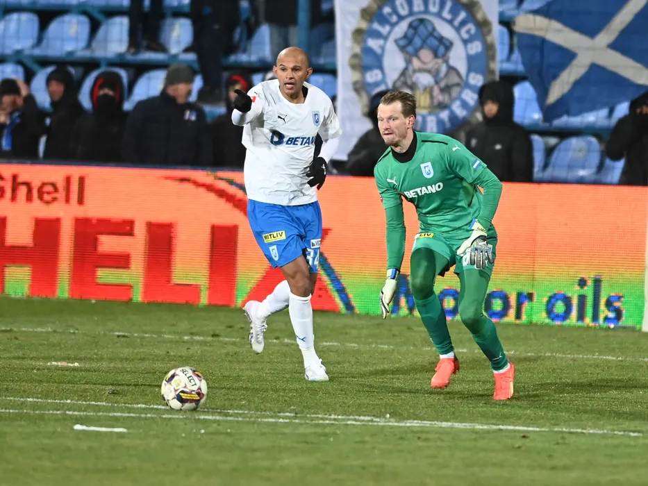 Raul Michel Melo Da Silva si Giedrius Arlauskis in meciul de fotbal dintre Farul Constanta si Universitatea Craiova, contand pentru Superliga Superbet, desfasurat pe Stadionul central al Academiei Gheorghe Hagi din Ovidiu, luni 6 februarie 2023. © FOTO:Razvan Pasarica/SPORT PICTURES