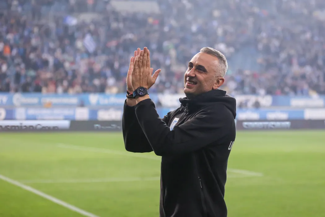 Bogdanov Ivaylo Petev saluta publicul dupa meciul de fotbal dintre Universitatea Craiova si Rapid Bucuresti, contând pentru Play off-ul Superligii Superbet, desfășurat pe Stadionul Ion Oblemenco din Craiova, sambata 30 martie 2024. © FOTO: Antonio Vasile/SPORT PICTURES