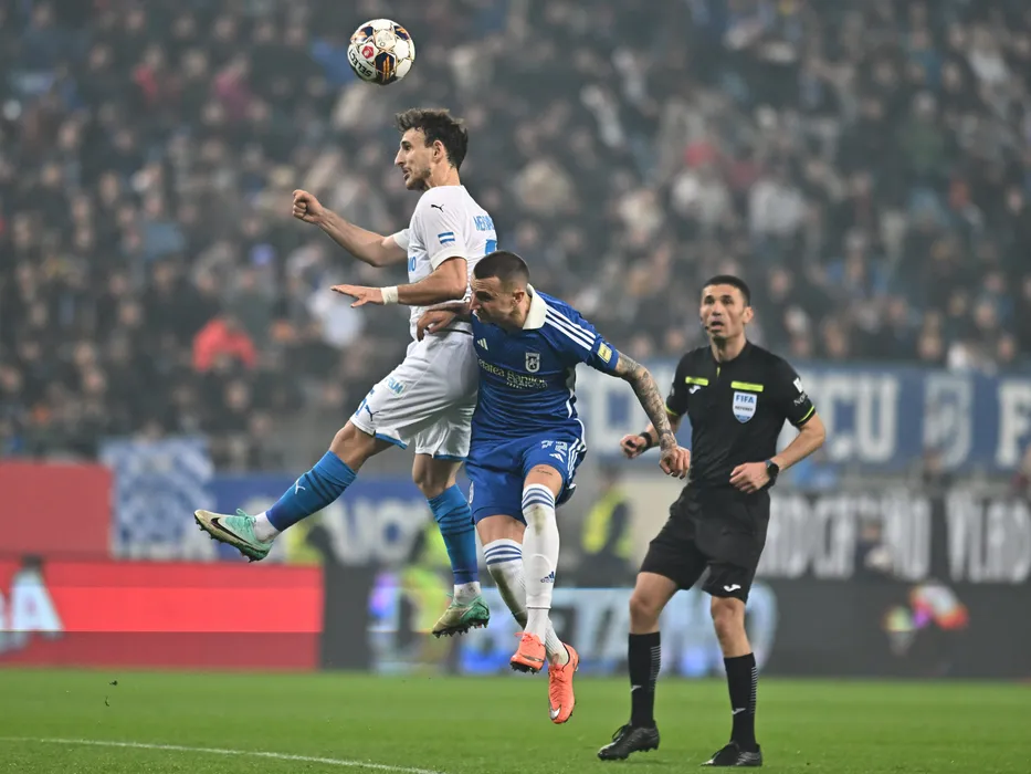 Anzor Mekvabishvili si Andrea Padula in meciul de fotbal dintre FC U Craiova si Universitatea Craiova, contand pentru Superliga Superbet, desfasurat pe Stadionul Ion Oblemenco din Craiova, duminica 10 martie 2024. © FOTO:Razvan Pasarica/SPORT PICTURES