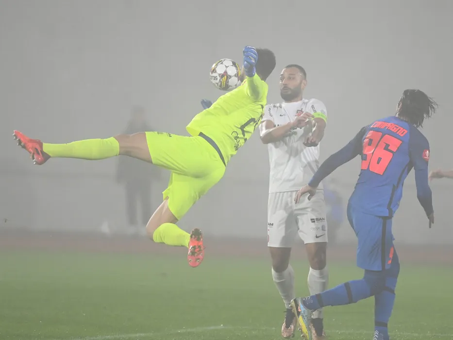 Karlo Letica, Florin Bejan si Andrea Compagno in meciul de fotbal dintre FC Hermannstadt si FCSB, contand pentru Superliga Superbet, desfasurat pe Stadionul Municipal din Sibiu, duminica 22 ianuarie 2023. © FOTO:Razvan Pasarica/SPORT PICTURES