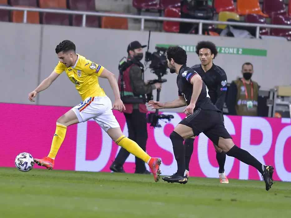 Ianis Hagisi Leroy Sane in meciul de fotbal dintre Romania si Germania, din cadrul Preliminariilor Campionatului Mondial 2022, desfasurat fara spectatori pe Arena Nationala din Bucuresti, duminica 28 martie 2021. © FOTO:Razvan Pasarica/SPORT PICTURES