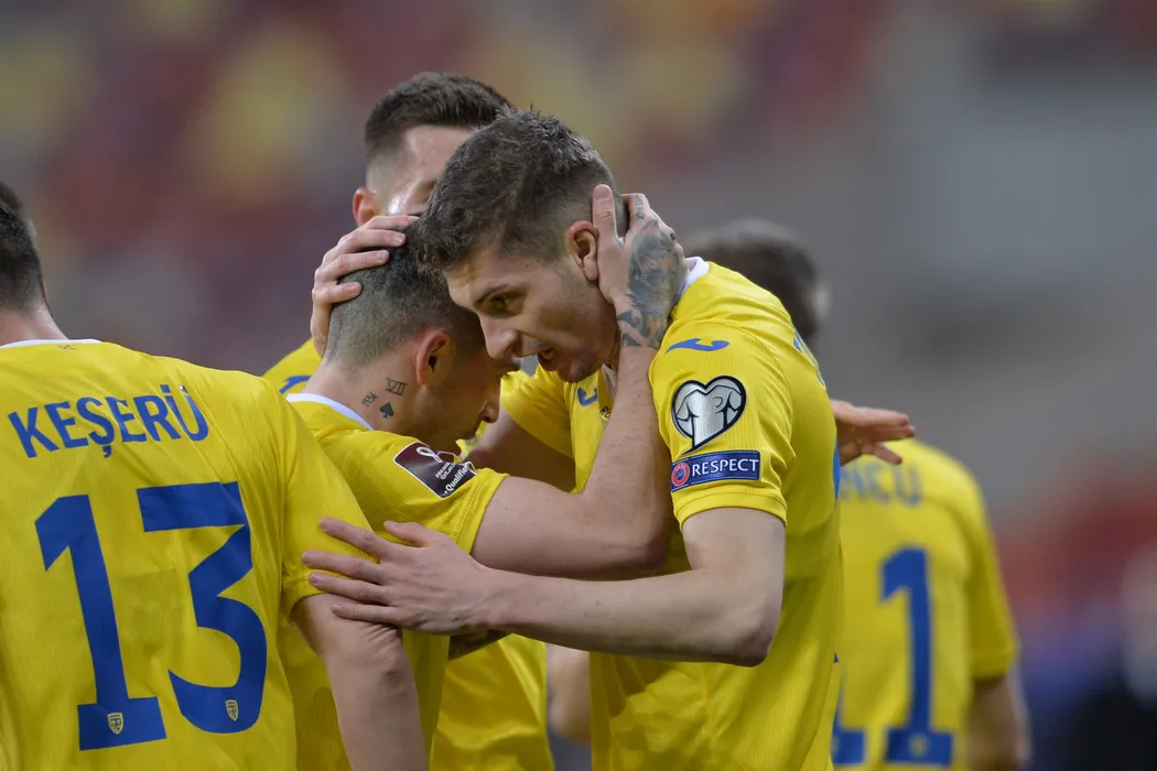 Reprezentativele Romaniei (echipament galben) si Macedoniei de Nord s-au intalnit intr-o partida contand pentru preliminariile CM 2022, joi 25 noiembrie 2021, pe Arena Nationala din Bucuresti. ALEXANDRU DOBRE / MEDIAFAX FOTO