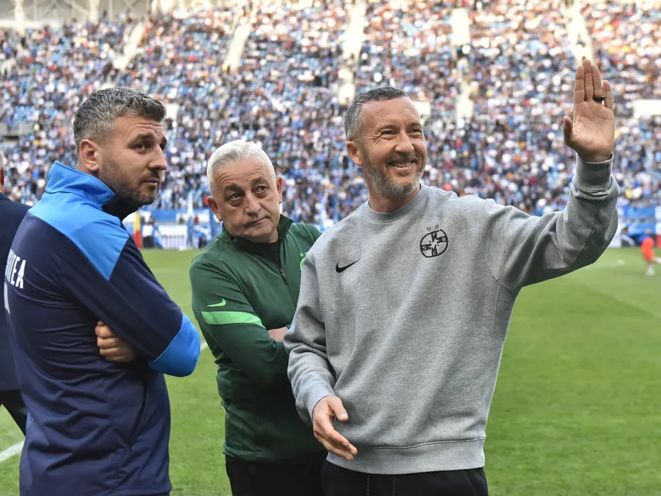 Emil Pieleanu alaturi de Mihai Stoica la meciul de fotbal dintre Universitatea Craiova si FCSB, contand pentru Play-off-ul Ligii 1 Casa Pariurilor, desfasurat pe Stadionul Ion Oblemenco din Craiova, duminica 8 mai 2022. © FOTO:Razvan Pasarica/SPORT PICTURES