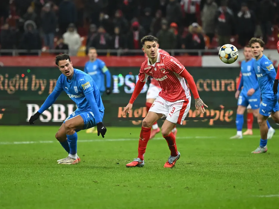 Assad Al Islam Al Hamlawi si Raul Marian Oprut in meciul de fotbal dintre Dinamo Bucuresti si Universitatea Craiova, din cadrul Superligii Superbet, desfasurat pe Arena Nationala din Bucuresti, luni 9 februarie 2026. © FOTO:Razvan Pasarica/SPORT PICTURES