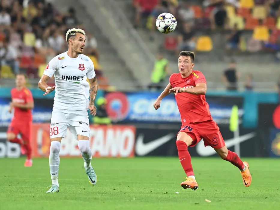 Raul Marian Oprut si Vadim Rata in meciul de fotbal dintre FCSB si FC Hermannstadt, contand pentru Superliga Superbet, desfasurat pe Arena Nationala din Bucuresti, duminica 28 august 2022. © FOTO:Razvan Pasarica/SPORT PICTURES