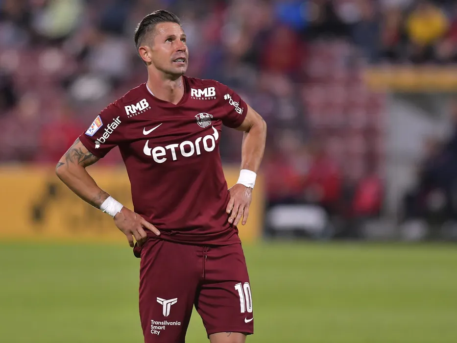 Ciprian Ioan Deac suparat dupa ratarea unui penalty in meciul de fotbal dintre CFR Cluj si Steaua Rosie Belgrad, contand pentru Play-off-ul UEFA Europa League, desfasurat pe Stadionul Dr. Constantin Radulescu din Cluj Napoca, joi 26 august 2021. © FOTO:Razvan Pasarica/SPORT PICTURES
