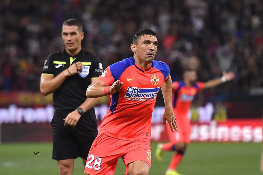 Claudiu Keseru, de la FCSB, reactioneaza dupa ce a inscris un gol in timpul meciului de fotbal contra echipei Dinamo din etapa a VIII-a a Ligii 1, disputat pe Arena Nationala din Bucuresti, duminica, 12 septembrie 2021. ALEX NICODIM / MEDIAFAX FOTO