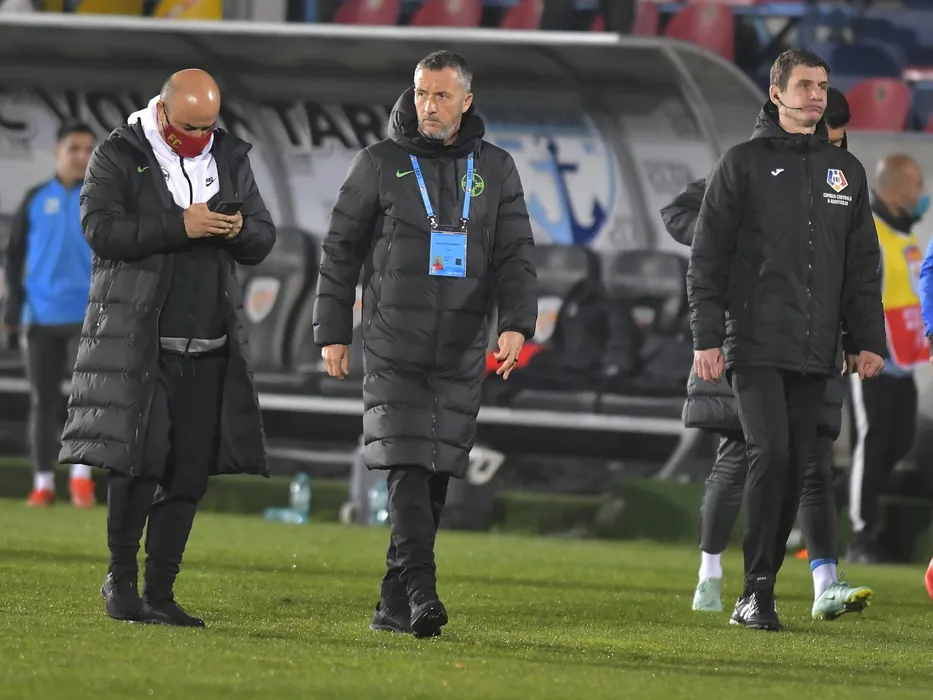 Mihai Stoica si arbitrul de rezerva Horia Gabriel Mladinovici in meciul de fotbal dintre FC Voluntari si FCSB, contand pentru Liga 1 Casa Pariurilor, desfasurat pe Stadionul Anghel Iordanescu din Voluntari, duminica 7 noiembrie 2021. © FOTO:Razvan Pasarica/SPORT PICTURES