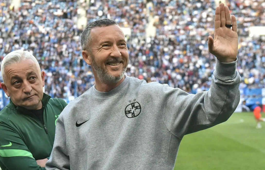 Emil Pieleanu alaturi de Mihai Stoica la meciul de fotbal dintre Universitatea Craiova si FCSB, contand pentru Play-off-ul Ligii 1 Casa Pariurilor, desfasurat pe Stadionul Ion Oblemenco din Craiova, duminica 8 mai 2022. © FOTO:Razvan Pasarica/SPORT PICTURES
