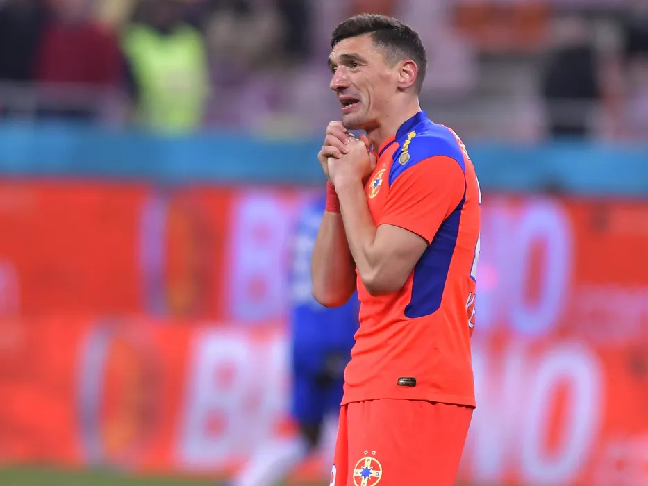 Claudiu Andrei Keseru suparat dupa o ratare avuta in meciul de fotbal dintre FCSB si FC U Craiova, contand pentru Liga 1 Casa Pariurilor, desfasurat pe Arena Nationala din Bucuresti, duminica 6 februarie 2022. © FOTO:Razvan Pasarica/SPORT PICTURES