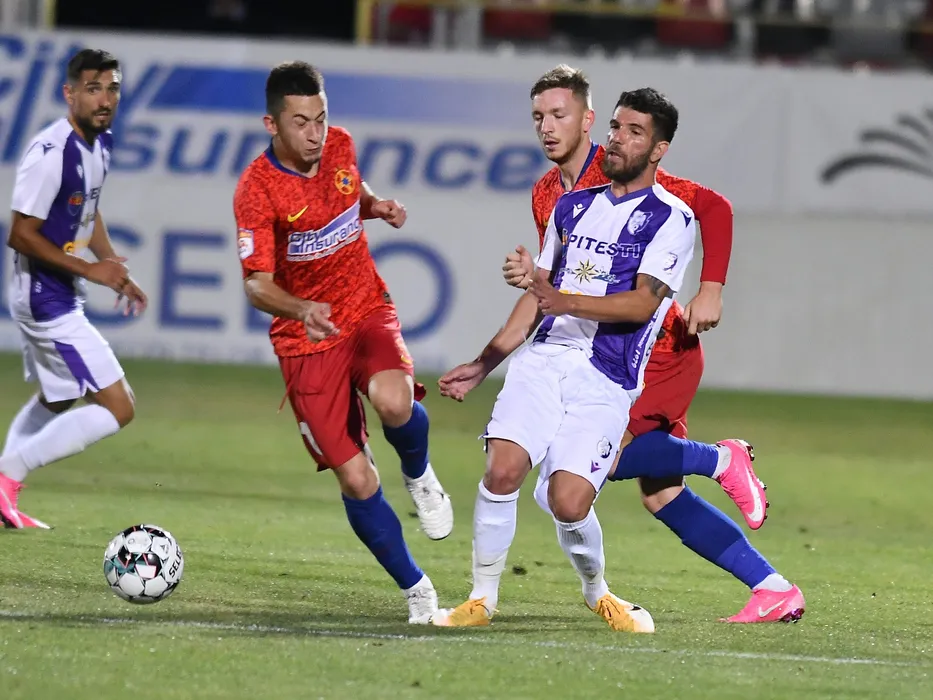 Olimpiu Vasile Morutan, Robert Ionut Grecu si Ionut Constantin Pantiru in meciul de fotbal dintre FCSB si FC Arges, contand pentru Liga 1 Casa Pariurilor, desfasurat fara spectatori pe Stadionul Marin Anastasovici din Giurgiu, duminica 20 septembrie 2020. © FOTO:Razvan Pasarica/SPORT PICTURES