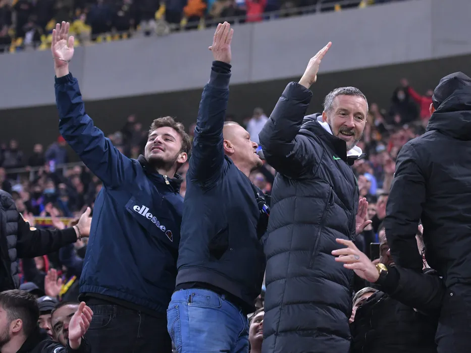 Gheorghe Mustata si Mihai Stoica canta cu galeria dupa meciul de fotbal dintre FCSB si Rapid Bucuresti, contand pentru Liga 1 Casa Pariurilor, desfasurat pe Arena Nationala din Bucuresti, miercuri 15 decembrie 2021. © FOTO:Razvan Pasarica/SPORT PICTURES