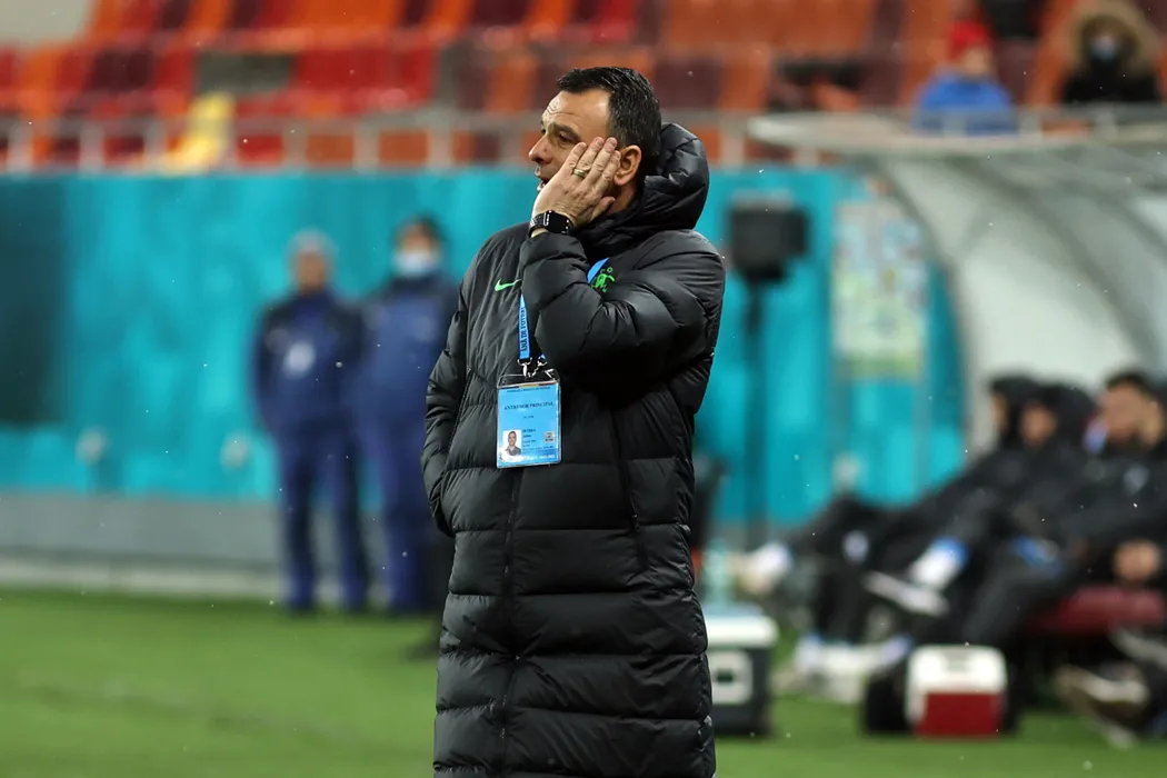 Anton Petrea, antrenorul echipei FCSB, urmareste meciul de fotbal contra formatiei FC Voluntari din etapa 30 a Ligii 1, disputat pe Arena Nationala din Bucuresti, duminica, 6 martie 2022. GEORGE FILIP / MEDIAFAX FOTO