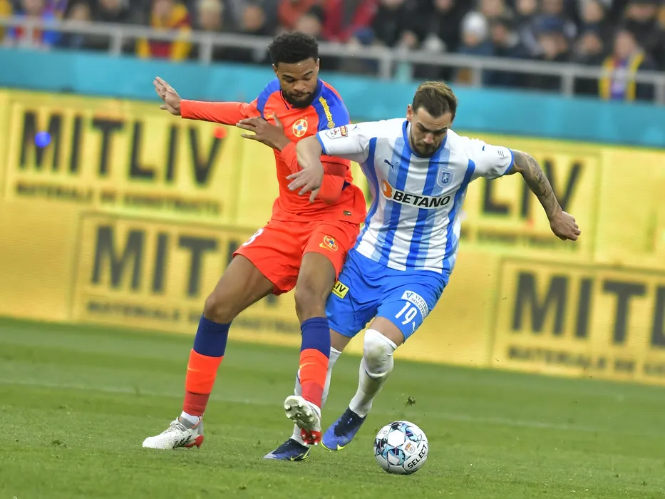 Sylas Laouari Edjouma Malcom si Elvir Koljic in meciul de fotbal dintre FCSB si Universitatea Craiova, contand pentru Play-off-ul Ligii 1 Casa Pariurilor, desfasurat pe Arena Nationala din Bucuresti, duminica 3 aprilie 2022. © FOTO:Razvan Pasarica/SPORT PICTURES
