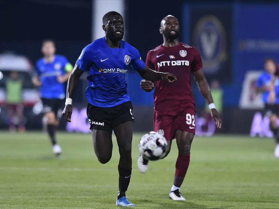 Kevin Luckassen si Mike Botuli Cestor in meciul de fotbal dintre FC Viitorul Constanta si CFR Cluj, contand pentru Liga 1 Casa Pariurilor, desfasurat fara spectatori pe Stadionul Central al Academiei Gheorghe Hagi din Ovidiu, duminica 4 octombrie 2020. © FOTO:Razvan Pasarica/SPORT PICTURES