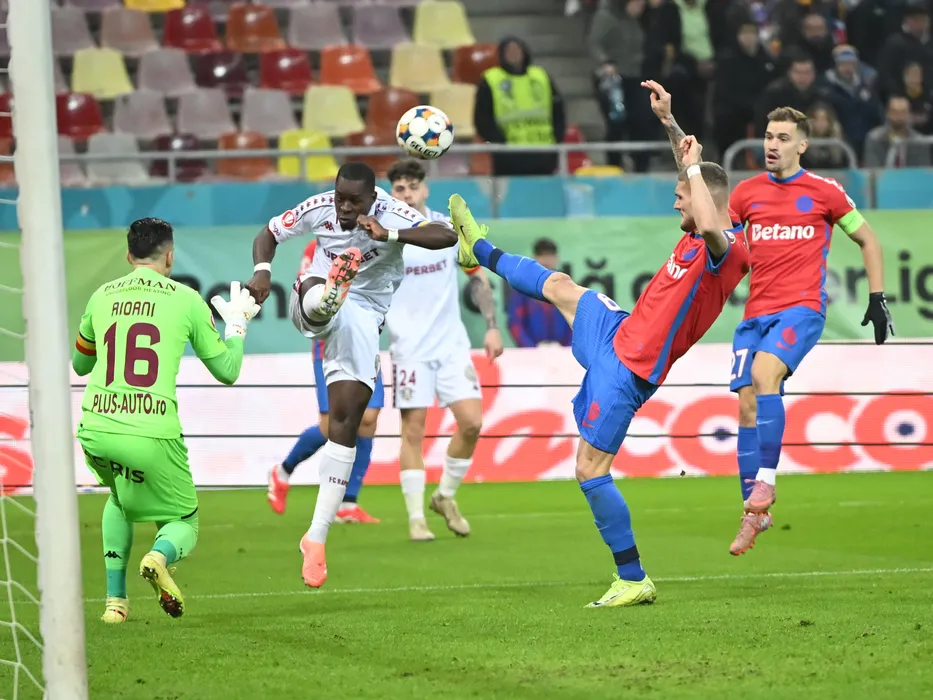 Abdul Kader Keita si George Daniel Bîrligea in meciul dintre FCSB si Rapid Bucuresti, contand pentru Superliga Superbet, desfasurat pe Arena Nationala din Bucuresti, duminica 21 decembrie 2025. © FOTO:Razvan Pasarica/SPORT PICTURES