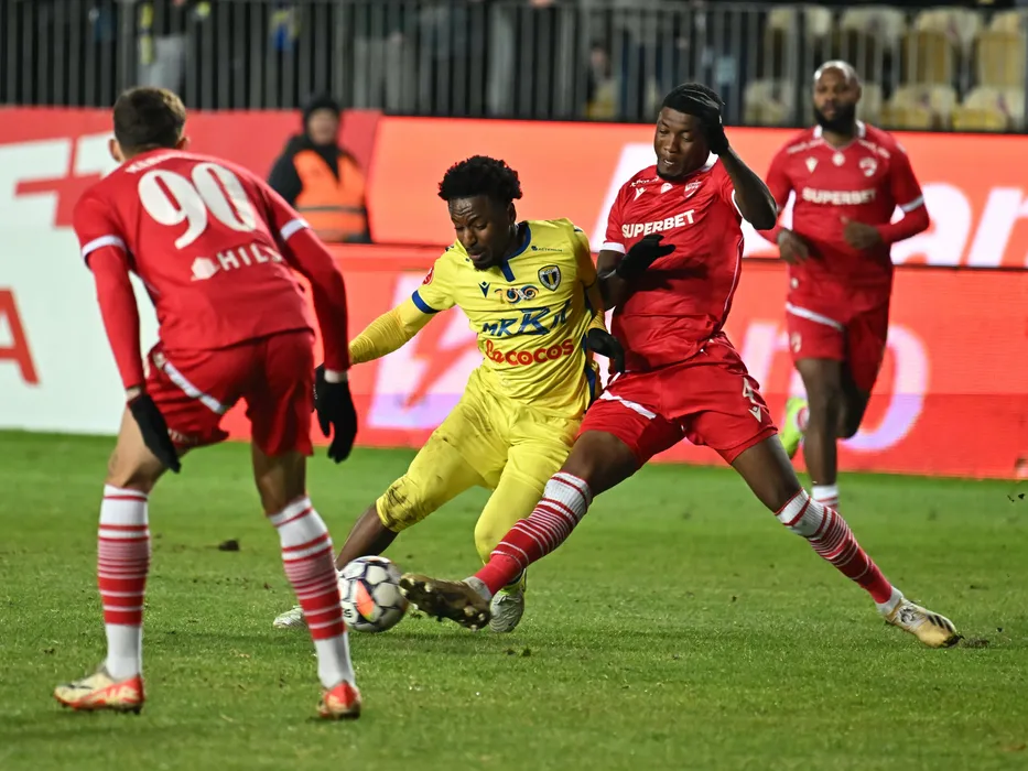 Tidiane Keita si Kennedy Kofi Boateng in meciul de fotbal dintre Petrolul Ploiesti si Dinamo Bucuresti, din cadrul Superligii Superbet, desfasurat pe Stadionul Ilie Oana din Ploiesti, duminica 24 noiembrie 2024. © FOTO:Razvan Pasarica/SPORT PICTURES