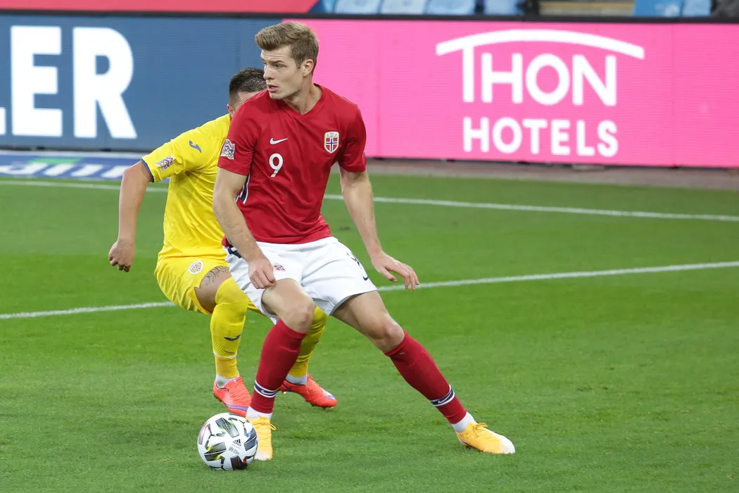 Alexander Sorloth in meciul dintre Norvegia si Romania din Liga Natiunilor disputat pe stadionul Ullevaal din Oslo, duminica, 11 octombrie 2020. © FOTO: Sport Picture