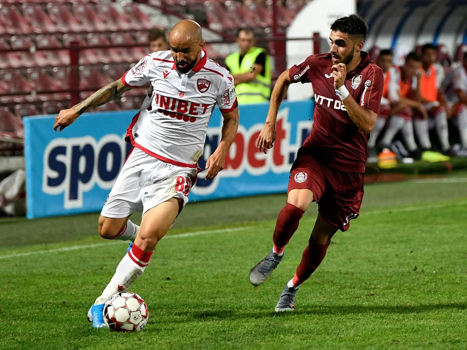 Gabriel Moura si Sebastian Mailat in meciul de fotbal dintre CFR Cluj si Dinamo Bucuresti, din cadrul Ligii 1 Casa Pariurilor, desfasurat pe Stadionul Dr. Constantin Radulescu din Cluj Napoca, sambata 27 iulie 2019. © FOTO:Flaviu Buboi/SPORT PICTURES