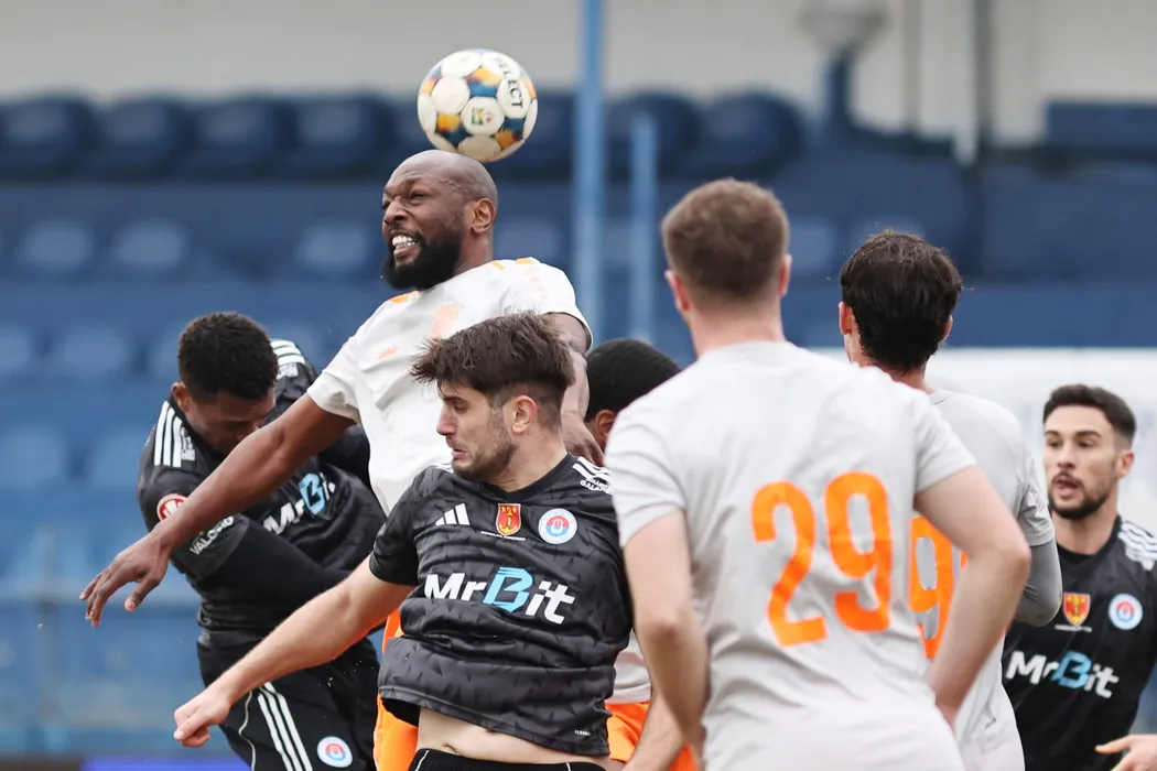 Mike Botuli Cestor si Paul Alexandru Iacob, Fernandes Fabio Patrick Dos Reis Dos Santos in meciul de fotbal dintre Metaloglobus Bucuresti si SC Otelul Galati, contand pentru Superliga Superbet, desfasurat pe Clinceni Arena din Clinceni, sambata 14 februarie 2026. © FOTO:Gheorghe Fluster/SPORT PICTURES