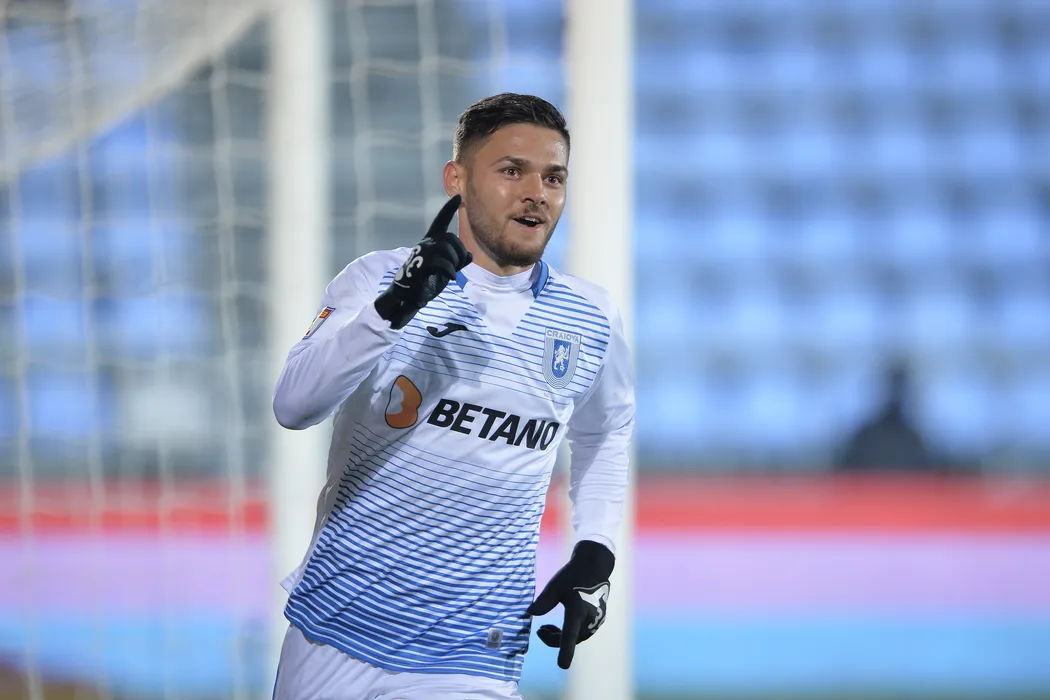 Alexandru Ionita de la Universitatea Craiova isi manifesta bucuria dupa ce a marcat in poarta celor de la FC Voluntari, in ultima partida al optimilor de finala din Cupa Romaniei la fotbal, joi 31 octombrie 2019, la Vountari. ALEXANDRU DOBRE / MEDIAFAX FOTO