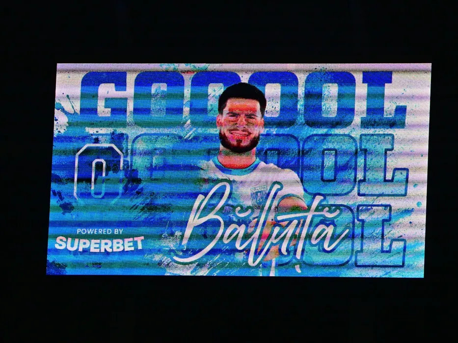 Tudor Cristian Baluta pe tabela de marcaj dupa un gol marcat in meciul de fotbal dintre Universitatea Craiova si FC CFR 1907 Cluj, contand pentru Superliga Superbet, desfasurat pe Stadionul Ion Oblemenco din Craiova, duminica 7 decembrie 2025. © FOTO:Remus Badea/SPORT PICTURES