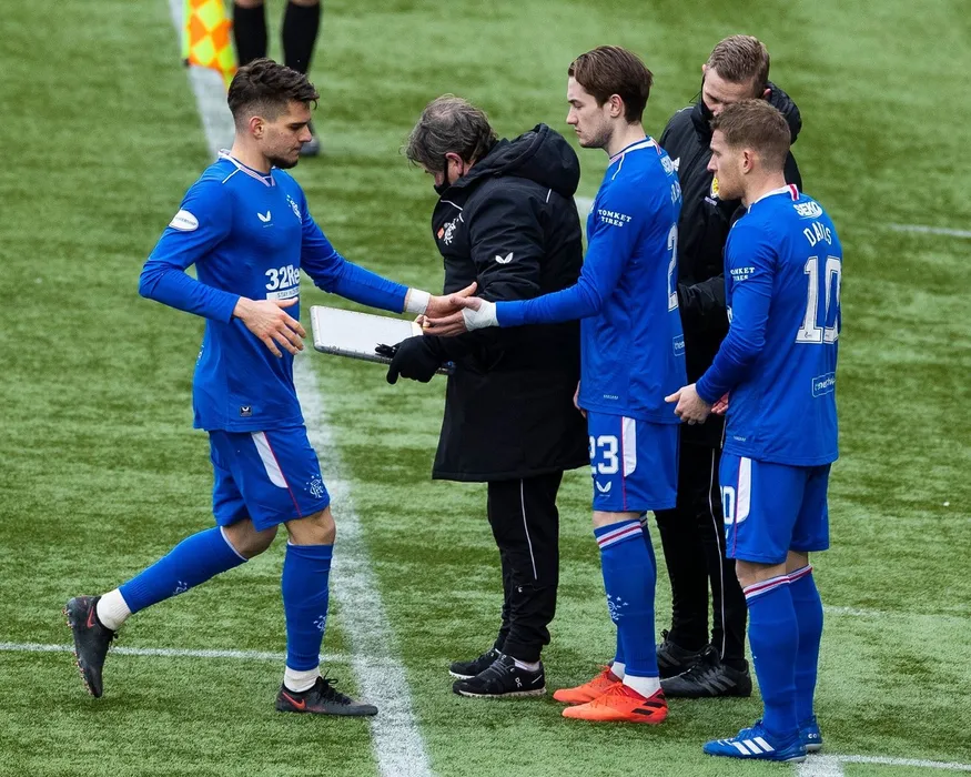 Scott Wright of Rangers replaces Ianis Hagi to make his debut during the Scottish Premiership match at the Fountain of Youth Stadium, Hamilton.