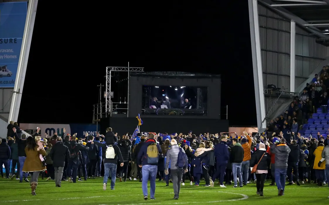Shrewsbury Town fans invade the pitch at full time and head for the BBC studio where Gary Lineker, Joe Hart and Ian Wright are working