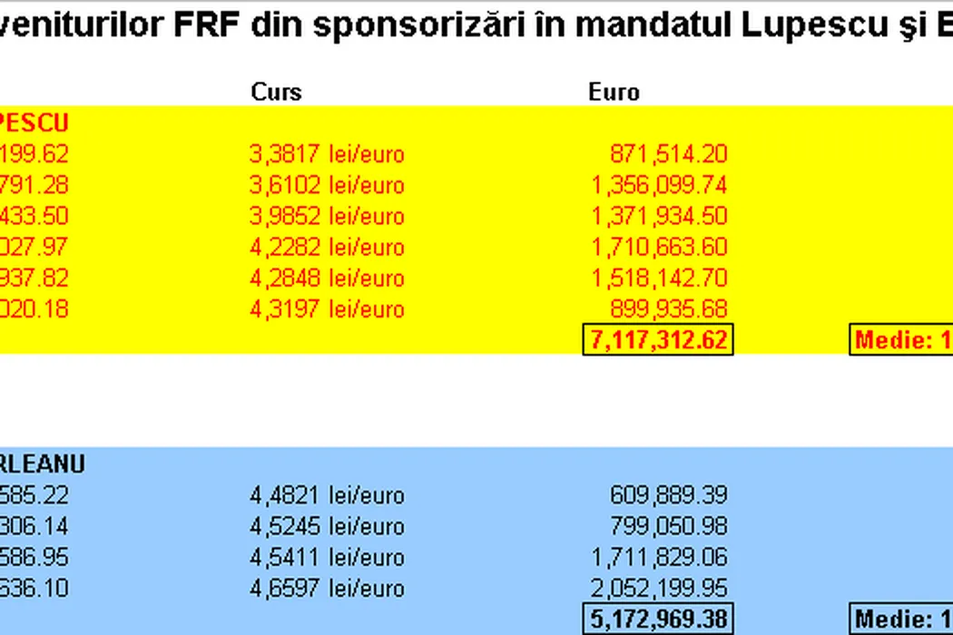 Mincinosul mincinoșilor: Burleanu a pretins pe 22 martie, într-o emisiune televizată, că „media veniturilor FRF din sponsorizări este de 4.000.000 de euro”. ACTE: care e, de fapt, cifra adevărată | GRAFICE