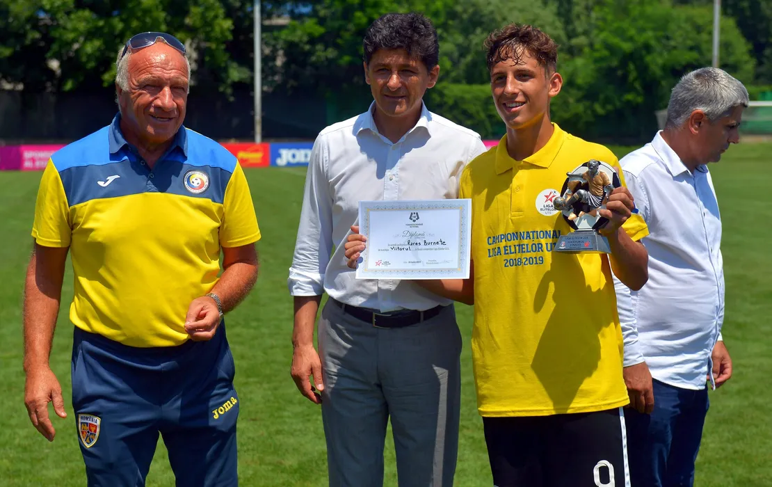 Miodrag Belodedici si Ionel Augustin premiaza jucatorul meciului dupa meciul de fotbal dintre Universitatea Craiova U15 si FC Viitorul U15, din cadrul finalei Ligii Elitelor U15,desfasurat la Centrul National de Fotbal de la Mogosoaia, miercuri 26 iunie 2019. © FOTO:Razvan Pasarica/SPORT PICTURES