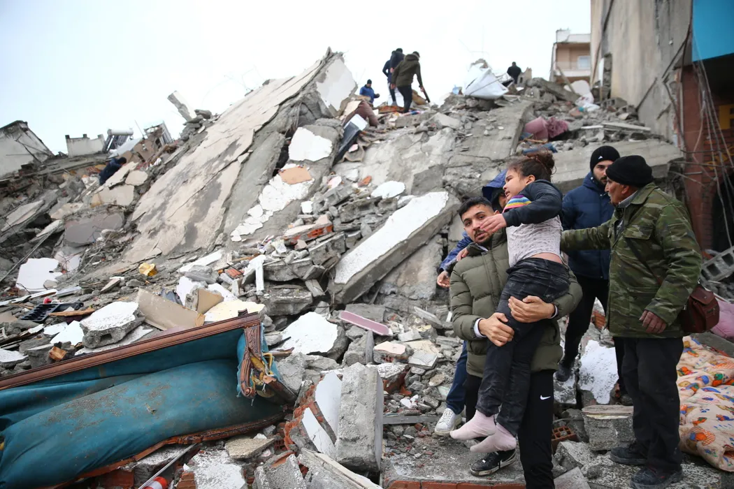 HATAY, TURKIYE - FEBRUARY 06: A child is being rescued under rubble after 7.7 magnitude earthquake hits Turkiye’s southern provinces, in Iskenderun district of Hatay, Turkiye on February 06, 2023. Disaster and Emergency Management Authority (AFAD) of Turkiye said the 7.7 magnitude quake struck at 4.17 a.m. (0117GMT) and was centered in the Pazarcik district in Turkiye’s southern province of Kahramanmaras. Gaziantep, Sanliurfa, Diyarbakir, Adana, Adiyaman, Malatya, Osmaniye, Hatay, and Kilis provinces are heavily affected by the quake. Sezgin Pancar / Anadolu Agency/ABACAPRESS.COM