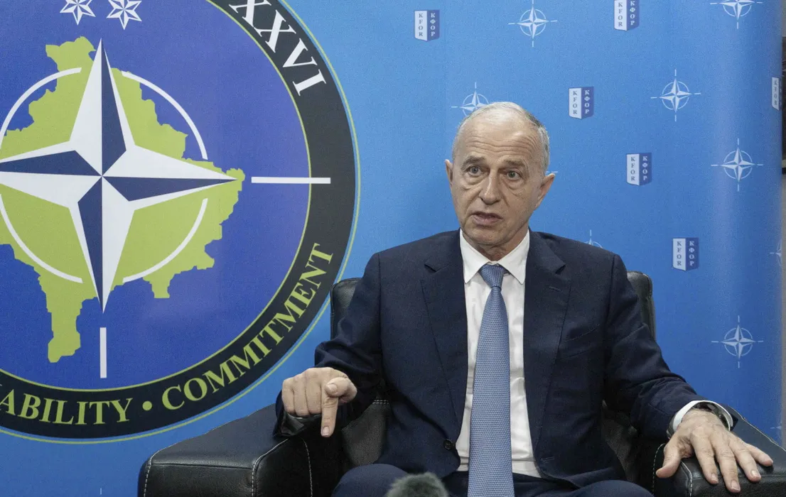 NATO's Deputy Secretary General Mircea Geoana speaks during an interview with The Associated Press in Kosovo's capital Pristina, Thursday, July 7, 2022. Geoana on Thursday said Western Balkan countries don't face an “imminent threat” from the war in Ukraine, and are of strategic interest to the Western alliance. (AP Photo/Visar Kryeziu)
