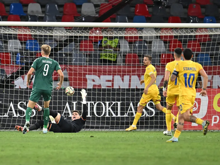 Ştefan Târnovanu si Nicușor Bancu la faza golului anulat lituanienilor in meciul de fotbal dintre Romania si Lituania, contand pentru Liga Natiunilor, desfasurat pe Stadionul Steaua din Bucuresti, luni 9 septembrie 2024. © FOTO:Razvan Pasarica/SPORT PICTURES